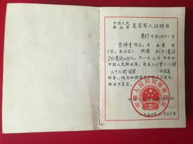 父亲刚入伍时分到了边联县县大队、公安局,后调到鲁中军区二军分区专署公安局。